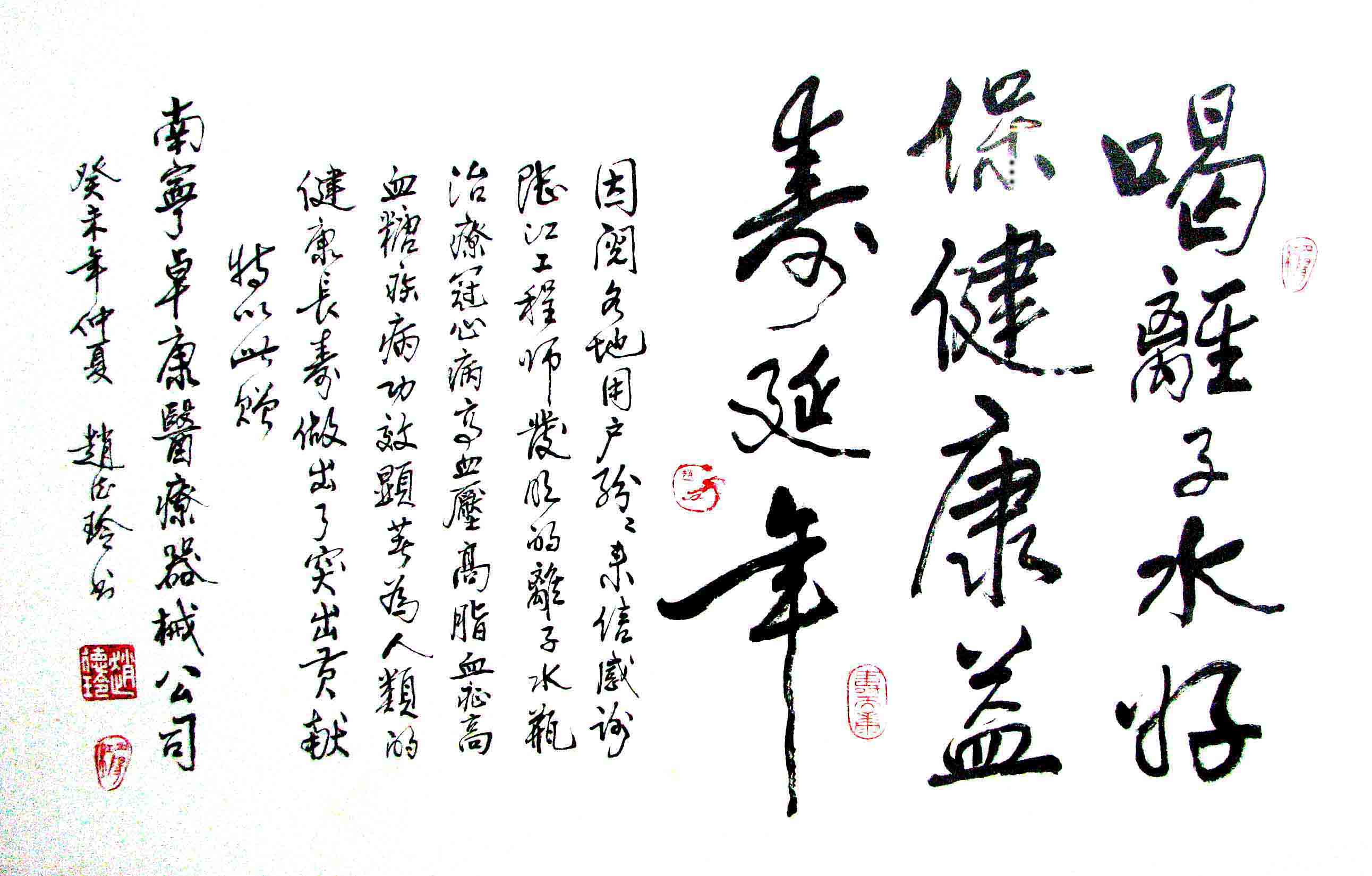 -----我是從事建筑的高工,本來沒有資格去攻克醫(yī)學(xué)難題,卻為了自身健康才扣響醫(yī)學(xué)的大門。由于我1990年患高血壓,因怕中風(fēng)才研究發(fā)明了離子水瓶,我把水處理成微小分子團(tuán)水,飲用后治愈了高血壓。便于1993年底送到三家省級醫(yī)院做臨床試用4個月。經(jīng)北京和廣西醫(yī)學(xué)專家鑒定:"降脂降壓效果好"," 能擴(kuò)大心腦動脈流量,改善心腦電圖以及微循環(huán)","對治療心腦動脈粥樣硬化、高血壓、高血脂有良好的醫(yī)療保健作用。""產(chǎn)品的技術(shù)性能和療效達(dá)到了同類產(chǎn)品的國內(nèi)領(lǐng)先水平,經(jīng)廣西醫(yī)學(xué)科學(xué)情報研究所檢索,未見國外有類似報道。"中國醫(yī)學(xué)科學(xué)院張正國教授從美國國立醫(yī)學(xué)圖書館數(shù)據(jù)庫存Medline檢索英俄文資料,均未見類似報告。2000年上市后,我為了對消費(fèi)者負(fù)責(zé)而繼續(xù)觀察研究,一直通過《信譽(yù)卡》和《質(zhì)量跟蹤調(diào)查書》向患者承諾療效,請用戶使用6個月后反饋效果。和脂壓患者飲用2至5個月內(nèi),消除癥狀,停服藥物,血壓正常;冠心病患者飲用3~5個月逐漸減輕至消除心絞痛、房顫等癥狀,不再服藥,飲用1年左右心電圖正常,經(jīng)冠脈造影掃描無明顯狹窄,表明冠心病痊愈。大量患者還反映許多衰弱器官被修復(fù),讓前列腺增生、慢性咽喉炎、慢性氣管炎、支氣管炎、慢性胃炎、腸炎和膽囊炎等不藥而愈;2型糖尿病患者是因?yàn)橐葝u衰弱致病,飲用該水半年至一年,逐漸減藥至停藥,血糖尿糖正常,真正治愈2型糖尿病。中風(fēng)后遺癥患者飲用六七個月,可逐漸減輕至消除肢體和語言障礙,表明飲用該水能讓壽命很長的神經(jīng)元細(xì)胞逐漸修復(fù),奇跡般地恢復(fù)肢體和語言功能。飲用后還使胸腺和脾臟兩個重要的免疫器官被修復(fù)和增強(qiáng),產(chǎn)生免疫細(xì)胞多,提高了免疫力,使人不生病或少生病。自此, 飲用微小分子團(tuán)水創(chuàng)造了攻克冠心病、高(低)血壓和糖尿病三大醫(yī)學(xué)難題的奇跡。人們對此感到不可思議,但實(shí)踐是檢驗(yàn)真理的唯一標(biāo)準(zhǔn)。